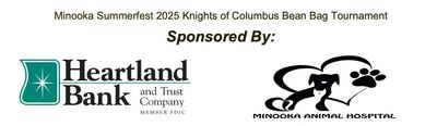 Knights of Columbus Fundraising Bean Bag Tournament sponsored by Heartland Bank and Minooka Animal Hospital. NEW LOCATION - St. Mary’s Catholic Church parking lot, located next to the Post Office. Check in and final registration at 10am and limited to 32 teams. Starts at 11:00am. Forms available at the Lions Club website or at Village Hall and Heartland Bank. $40.00 entry fee. At least one 18yr old and over per team. PRIZE MONEY: $1000 minimum total payout Cash Pay: 1 paid place for every 3 Teams entered with 12 team minimum (under 12 teams: 4 payouts). Call, text or email Dan @ 815.260.5252 or klepecdan@comcast.net or Craig @ 815-531-5978