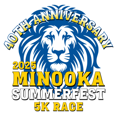 Race day registration will be available from 6:45am to 7:45am and will be $40.00. Registration will be under the big tent at the corner of Wabena Ave. and Mondamin St. Please pay by cash or check, payable to Minooka Lions Club. Online registration is $35.00 plus online fee. Registrations after June 3rd will be $40.00. Online registration closes June 11th. Free kids’ races (10 and under) immediately following the 5K.